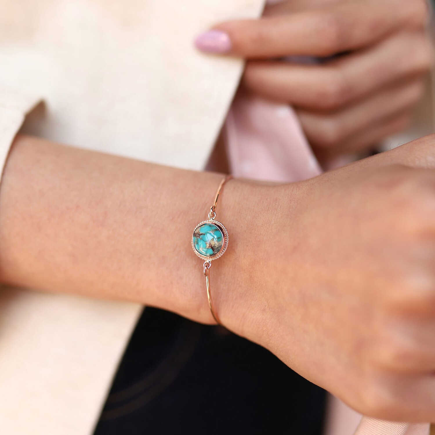 Burgu Çerçeve Yuvarlak Firuze Bileklik